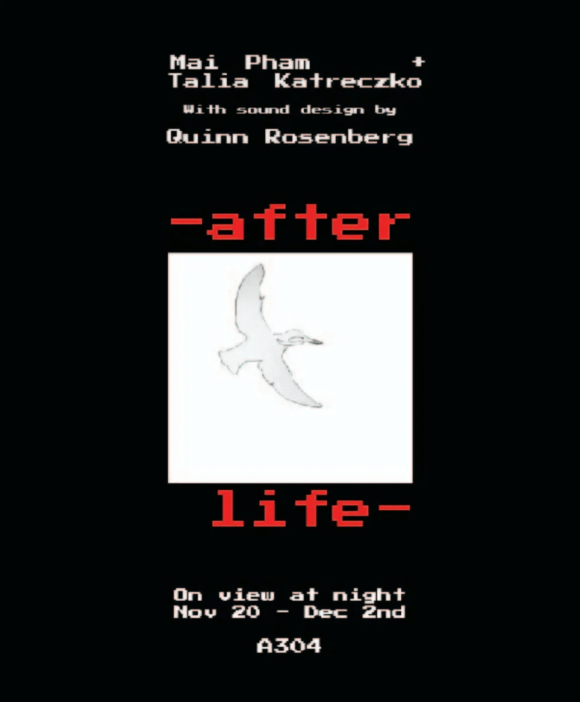 Exhibited at the School of the Museum of Fine Arts at Tufts University with work by Talja Katreczko and Mai Pham 11/20-12/2/25 as well as the Intermediate Studio Seminar Show “I woke up in a fit of rage… in my sleep… in my sleep” at Tufts University 12/9/25